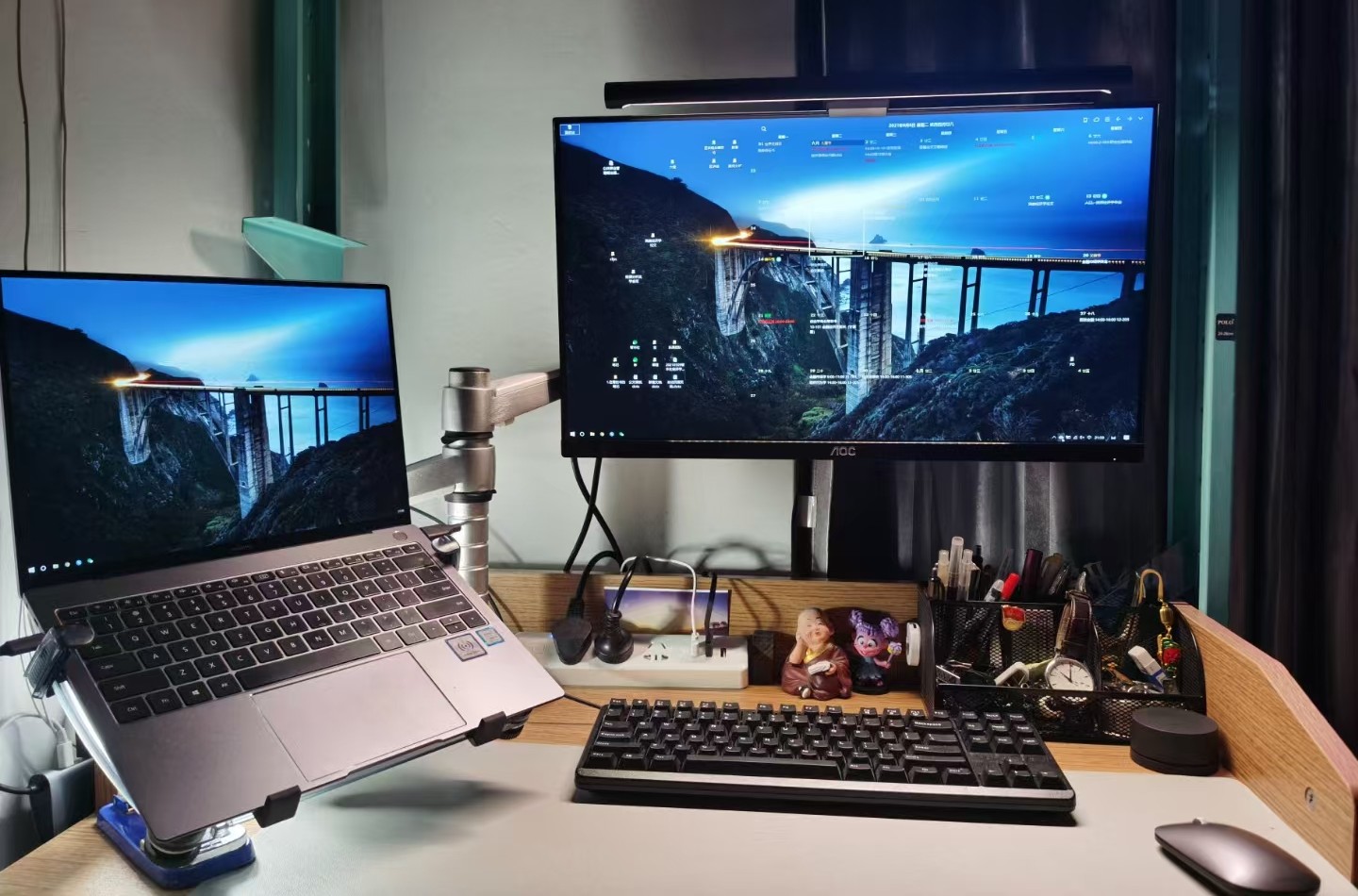 大一时候在家用笔记本电脑学习,屏幕是 13.3 寸的,麻麻觉得对眼睛不好,甚至觉得有脖颈前倾的倾向,问有没有解决方案。自然是有的,使用钞能力!